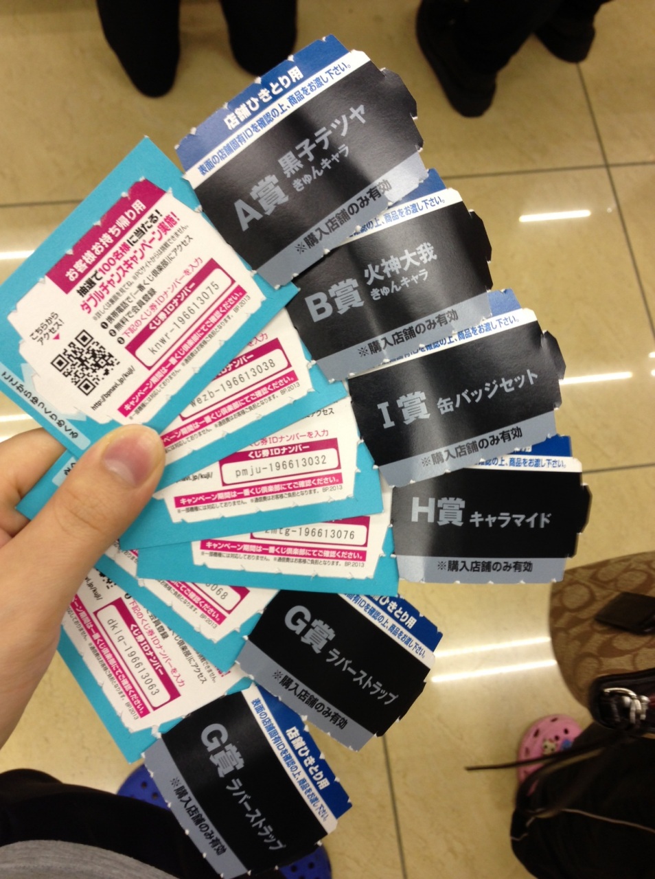市内のセブイレ全部電話してとりあえず0時きっかりにはじまるとこ行った。ら、もう既に人おって、なんかレジで名前書かされてる人いて便乗して書いたらここで終了です!とか言われてなんぞって思ったら60回÷10人だったらしく最後の一人だった!!!